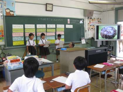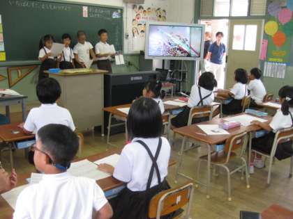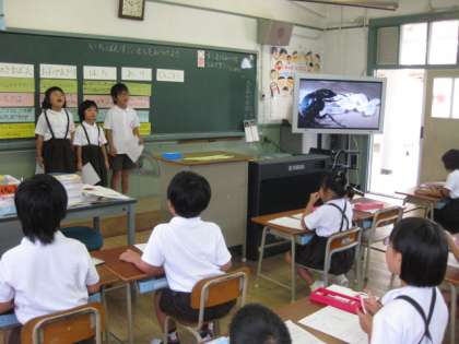生活科の学習の様子です。グループごとに決めた「むし」について調べたことを発表しました。写真を見せながら、みんなに伝わるように工夫して発表しています。はちやちょうなど、いろいろな「むし」について詳しくなりました。