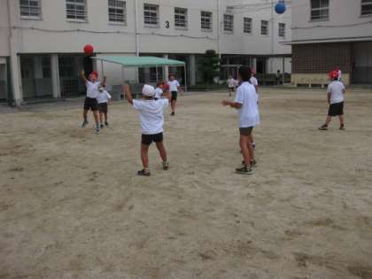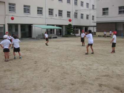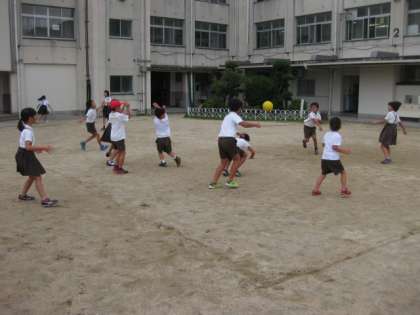 台風が過ぎ去り、今日は休み時間にたくさんの子どもたちが運動場に出て遊んでいました。
