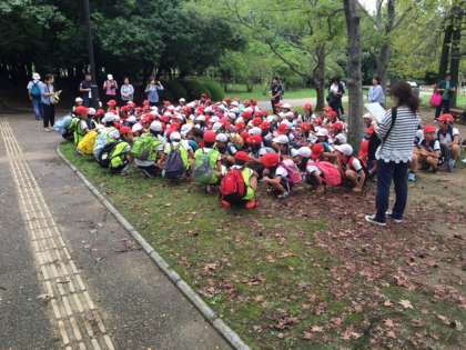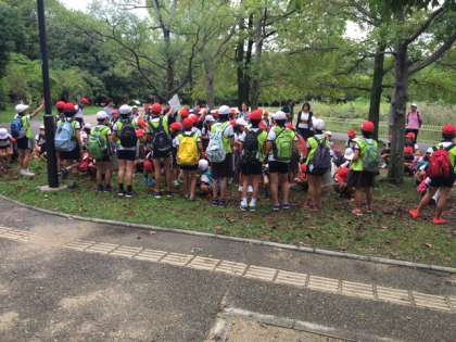 今から縦割り班でオリエンテーリングに出発します。協力して楽しいオリエンテーリングにしたいと思います。