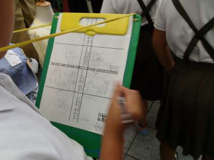 休憩する人のために椅子が置かれていたり、自転車についての注意書きがあったり、商店街ごとにタイルの色が違ったり、普段歩いている時には気づかなかったことをしっかり見てメモしました。