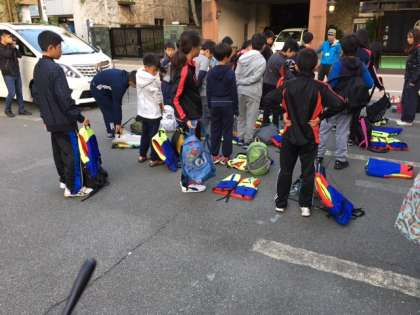 お弁当を持ってライフジャケットを着て出発の準備です。