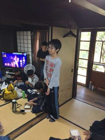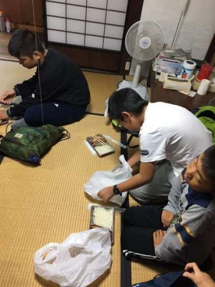近所の民家で朝食のお弁当をいただきます。