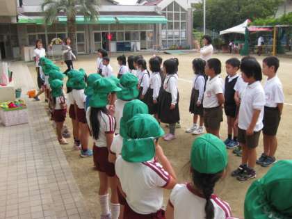 1年生は鶴橋幼稚園の園庭で園児と一緒に活動しました。パラバルーンやリレー、玉入れをしました。「がんばれ!」「やったあ!」と、子どもたちの声が響いていました。元気いっぱいの1年生と園児たちでした(^^)