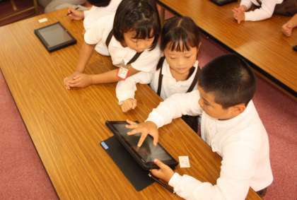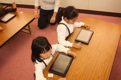 タブレットなどを使う練習をしました。自分で撮った写真にお絵かきなどをしました。みんな、楽しく活動できました。