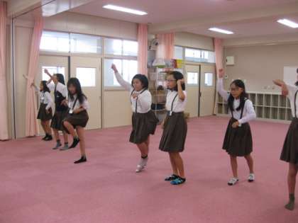 「カウントに合わせて順番に、手をあげていこう!」など、