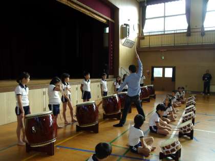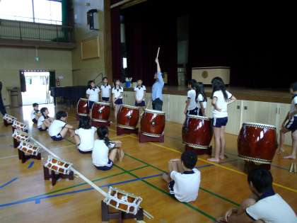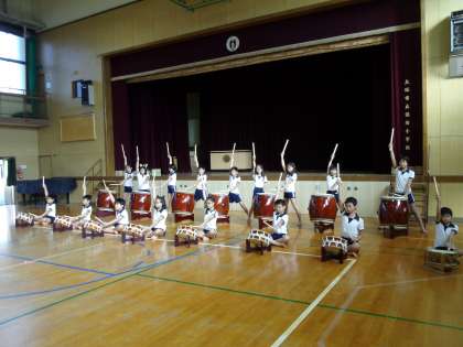 和太鼓の3回目の練習をしました。みんなでカウントを大きな声で数えながら、息を合わせて、宮太鼓と締め太鼓をたたくことができました。体育館中に迫力ある音が響きわたっていました。男の子も女の子も力強く叩いていて、とてもかっこよかったです!!