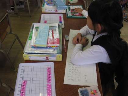 今日は、くり下がりのひきざんの計算の仕方を考えました。