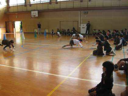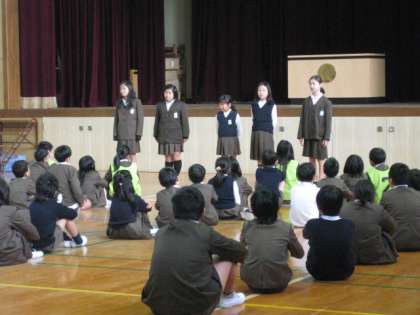 今日の児童集会は、「ぞうきんがけ競争」をしました。