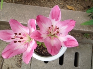 管理作業員の至田さん、東さんが世話をしているユリの花が咲きました。