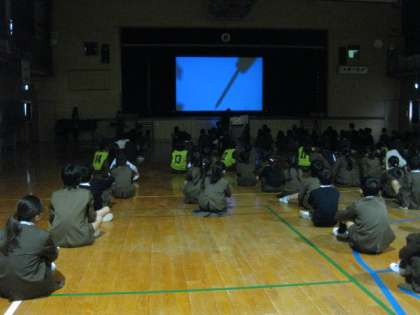 学校で使うものをかげに写し出し、形を見て当てるゲームです!