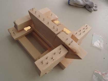 3年生の図工の時間です。前の時間に組み立てた木材に、かなづちを使ってくぎを打ちました。「トントントン」と、図工室にくぎを打つ音が響いていました。まっすぐにくぎが入らず曲がってしまった時は、くぎぬきで抜きます。くぎを使って、いろいろな模様ができていました。