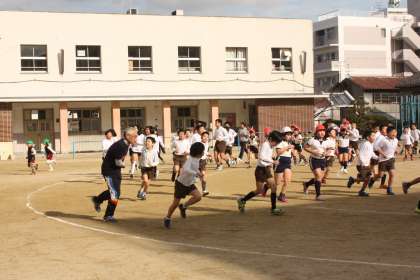 かけ足週間も今日で7日目です。自分のペースを考えながら走っているので、途中で歩いたり止まったりする子どもも少なくなりました。「いちに、いちに」とリズムよく走っています。