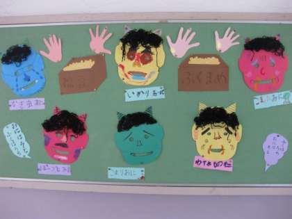 泣き虫おにやいかりおになどいろいろなおにを子どもたちが作りました。