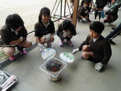 炭に火をつけるのに苦労しましたが、班で協力して火をつけることができました。