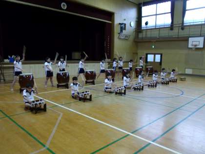 見守り隊ありがとう集会に向けてがんばってきた太鼓の練習も最後になりました。初めはバラバラだった音が、心を一つにして練習していくうちにそろって、とても迫力ある演奏になりました。見守り隊ありがとう集会でのかっこいい5年生の演奏を楽しみにしていてください。