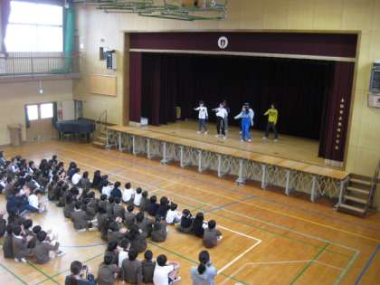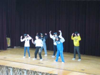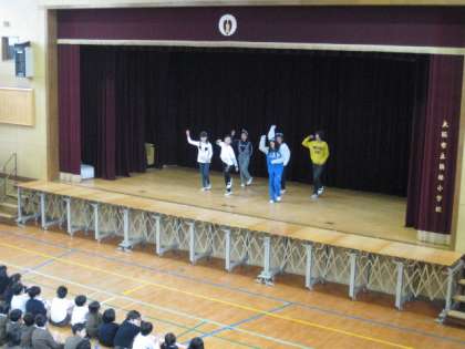 昼休みに講堂で音楽クラブのダンスを発表しました。