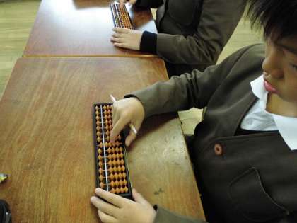 3年生のそろばん学習の様子です。今日は3ケタのみとり算に挑戦しました。えんぴつを持ったまま、パチパチと玉を入れたり取ったりして計算するやり方にも慣れたようです。