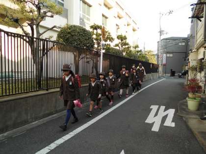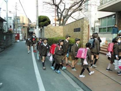 今日から登校班は、新年度の新しい班長さんに交代です。今までの班長さんは登校班の列の一番後ろからみんなの様子を見守っています。