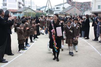 最後に、みんなで運動場に花道をつくり拍手で祝福しました。