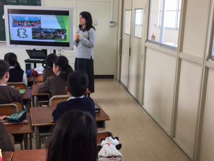 5年生が初めての英語学習に挑戦しています。アン先生にハワイの話を聞きました。