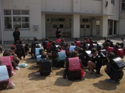 その後、運動場に集合してから、集団下校の訓練をしました。
