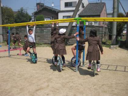ドッジボールや、一輪車、シャングルジムが人気です。