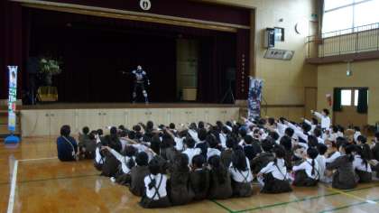 今日は生野警察署の方々が、1〜4年生と鶴橋幼稚園のために防犯教室を開催していただきました。