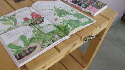 さらに棚の上のおすすめ本は、偶然にもアゲハチョウのページが開かれていました。これにもみんなビックリ!