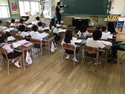 大学からも授業の様子を見に来られました。大学の先生は、子ども達がお互いに意見を言い合い、話し合う姿を見て「素晴らしい!」と褒めてくださいました。