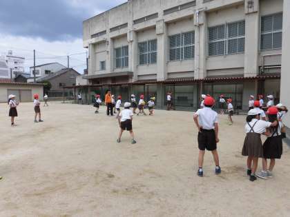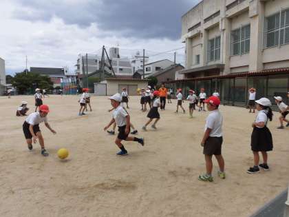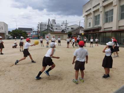 お昼休み、運動場で3年生がみんな遊びをしていました。