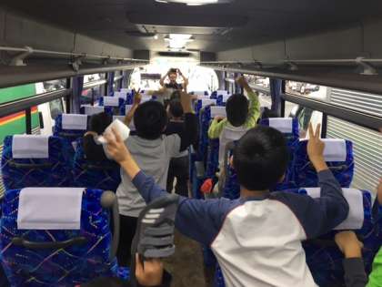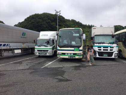 赤松でトイレ休憩です。バスレク係が大活躍です。