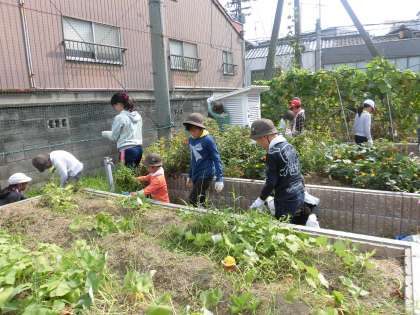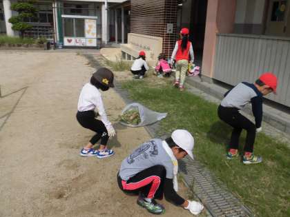 各学年、担当場所に分かれて、一生懸命草むしりをしました。