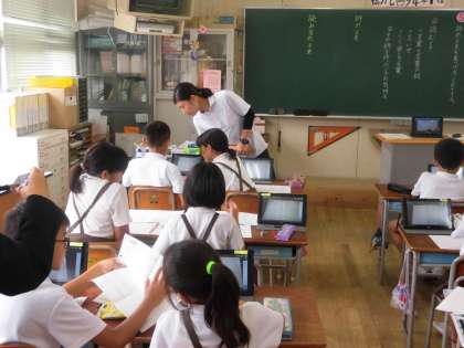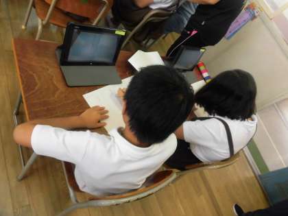 4年生の国語では、タブレット端末を使った授業がおこなわれました。