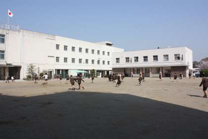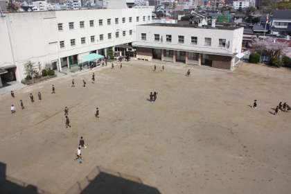 プレハブ校舎が撤去され、運動場が広くなりました。子どもたちは、思いっきり運動場で体を動かしていました。始業式の日から、子どもたちはとても元気です。