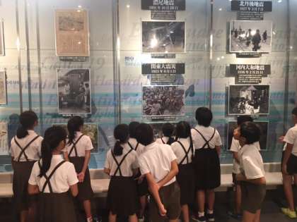 今日は、阿倍野防災センターで、防災について学びます。いろいろな体験をすることで、災害について考えていきます。