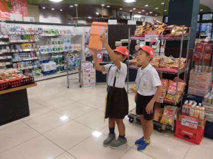 お話を聞いた後は、グループに分かれて、店内の工夫しているところを探し、IPadで写真を撮りました♪
