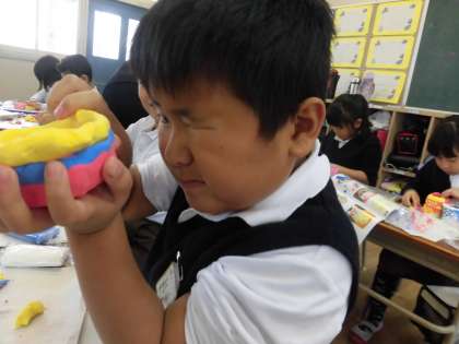 赤、青、黄、白とカラフルなねん土を、みんな上手に組み合わせていましたね。