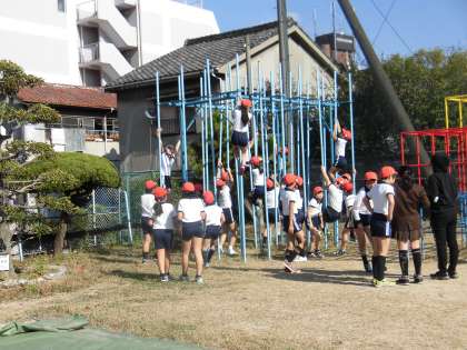 その後は、鉄棒やのぼり棒、おにごっこで体をあたためました。