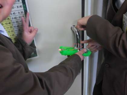 「理科室のドアノブは、なんだか電気を通しそうな予感・・・!」