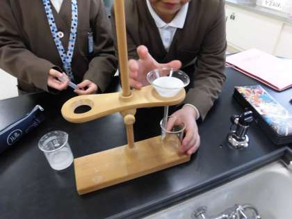 今日はまず、ミョウバンと食塩水を“ろ過”しました。