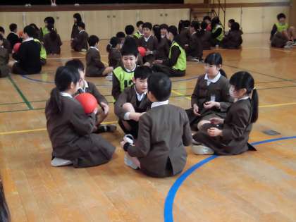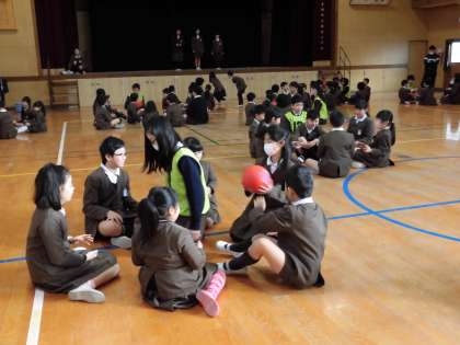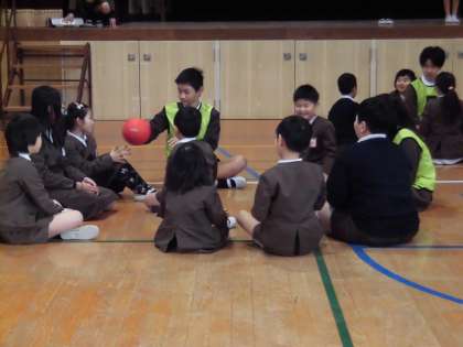 今日は、2週間ぶりに児童集会がありました。音楽に合わせてボール回しゲームをしました。それぞれのたてわり班では、音楽のストップとともに歓声があがり、みんな笑顔で楽しいひとときを過ごすことができました。