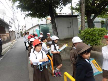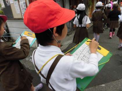 地図を見ながら、どんな建物や施設があるか、見学していきました。