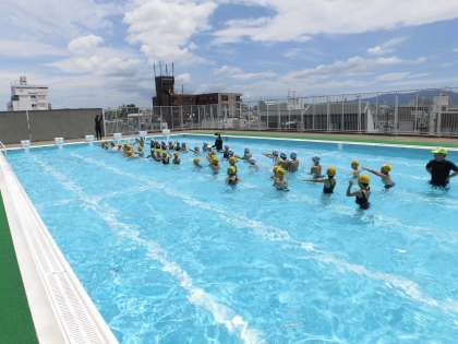 今週から始まった水泳学習ですが、1、2年生は今日で2回目です。