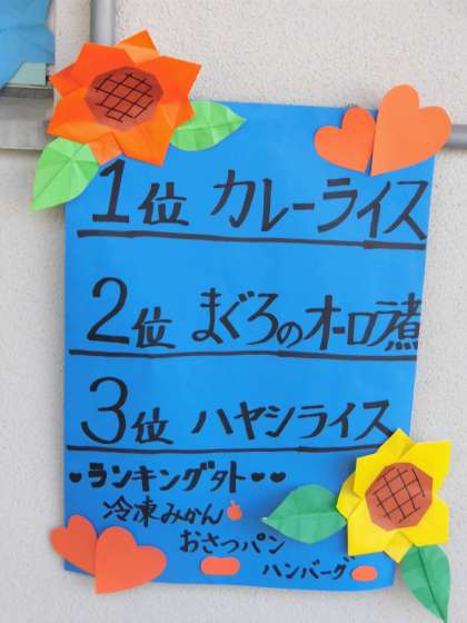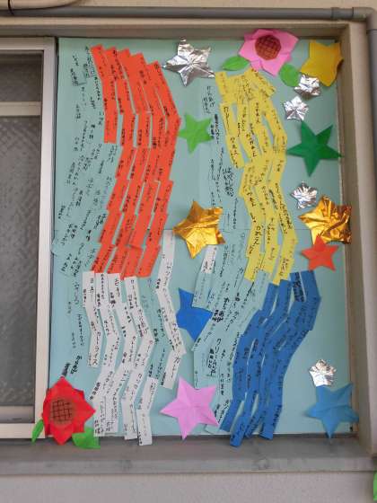 天の川の短冊には、子どもたちの好きな献立が書いてあります。