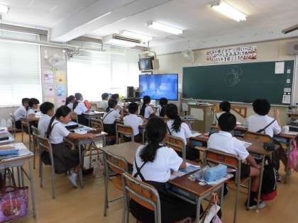 先週の『平成30年7月豪雨』のニュースについて話し合ったり、ニュースの映像を見たりししました。