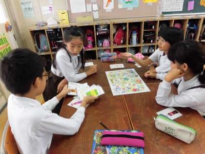 すごろくを使いながら、おかしやジュースのエネルギーについて考えました。おやつにはエネルギーがー多く含まれていることや、食べた分だけ運動するなど、学んだことを忘れずにおやつの食べ方に気をつけましょう。