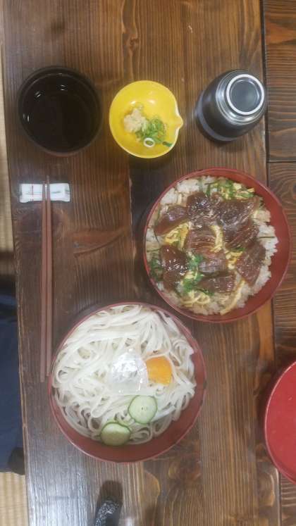 お昼ごはんはでこねずし、伊勢うどん、みんなで釣ったお魚をいただきます。
