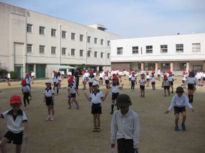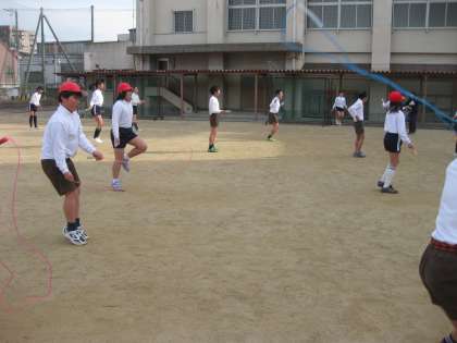 保健体育委員会の子どもたちが、前に立って体操をしたり見本を見せたりしています!