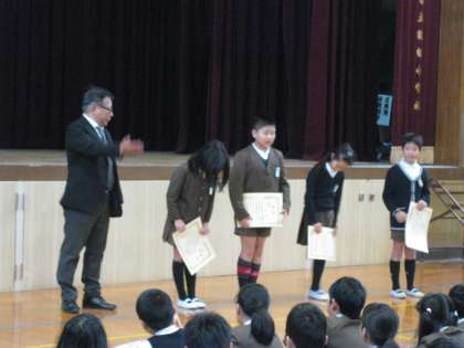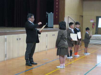 今日の児童朝会では、MOA美術作品展コンクールの表彰がありました!