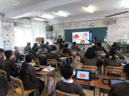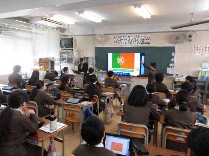 5年生の外国語では、自分の行ってみたい国や地域を発表しました。